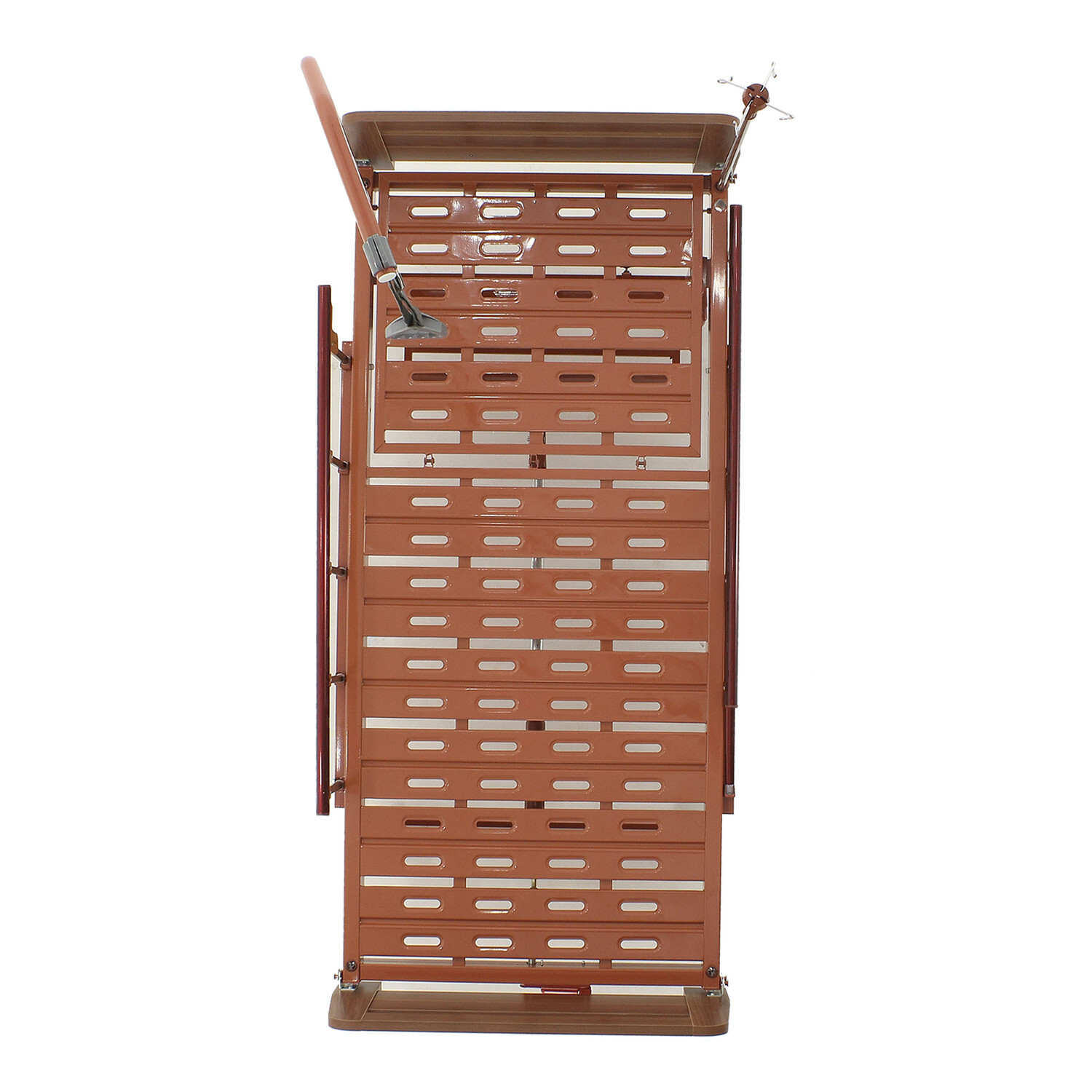 Шкаф предназначен для хранения одежды и личных вещей для кабинета врача. Два отделения с пятью полками каждое.